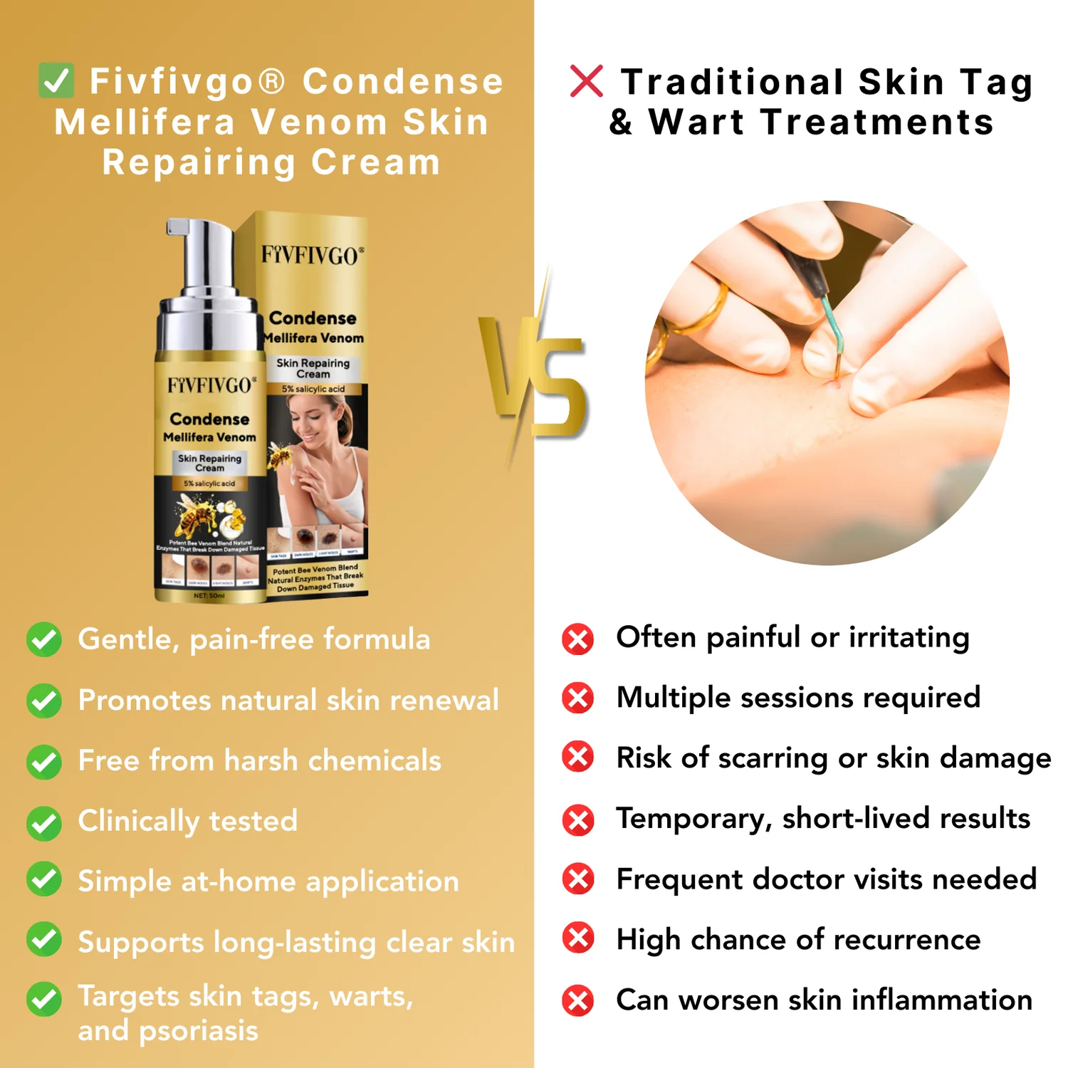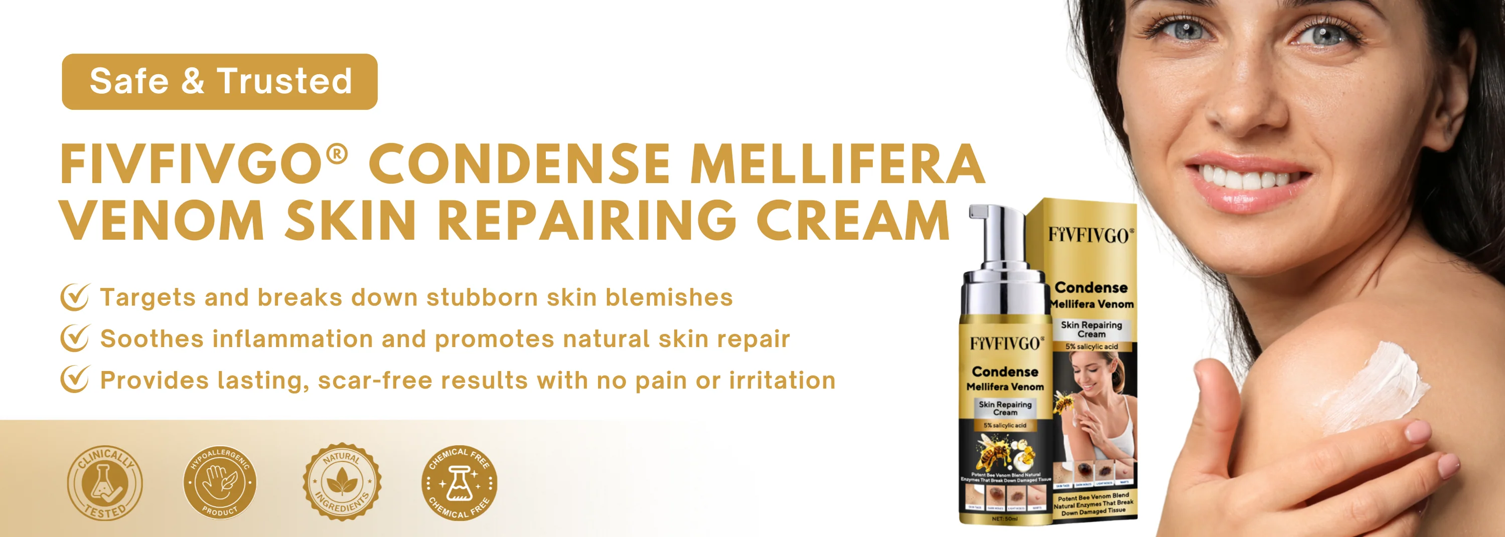 Fivfivgo® Condense Mellifera Venom Skin Repairing Cream is a fast-acting, at-home solution that combines Mellifera Venom and 5% Salicylic Acid to break down abnormal tissue, soothe inflammation, and promote healthy skin regeneration. It delivers smooth, clear skin across multiple conditions—saving you time, money, and frustration from endless single-purpose treatments.